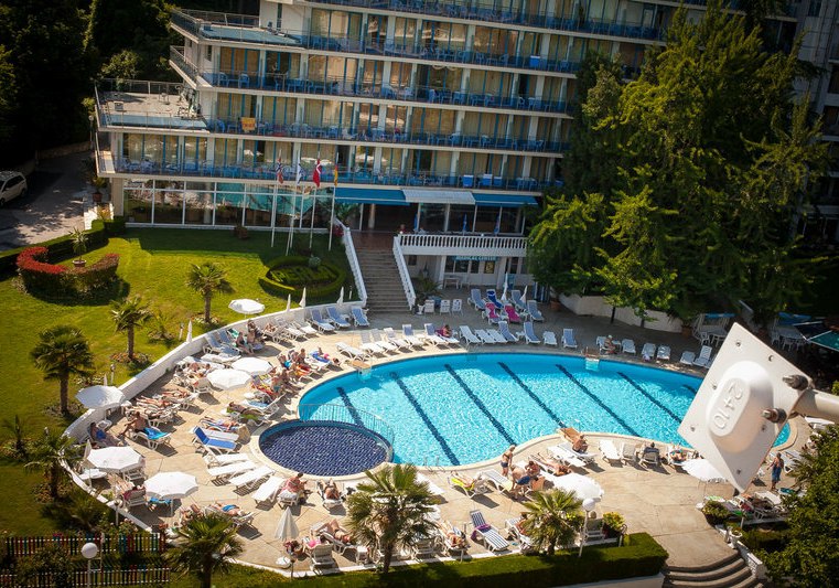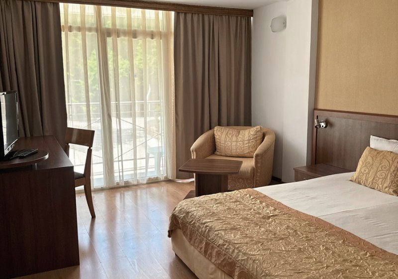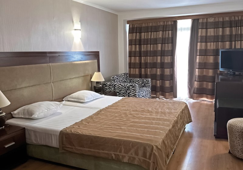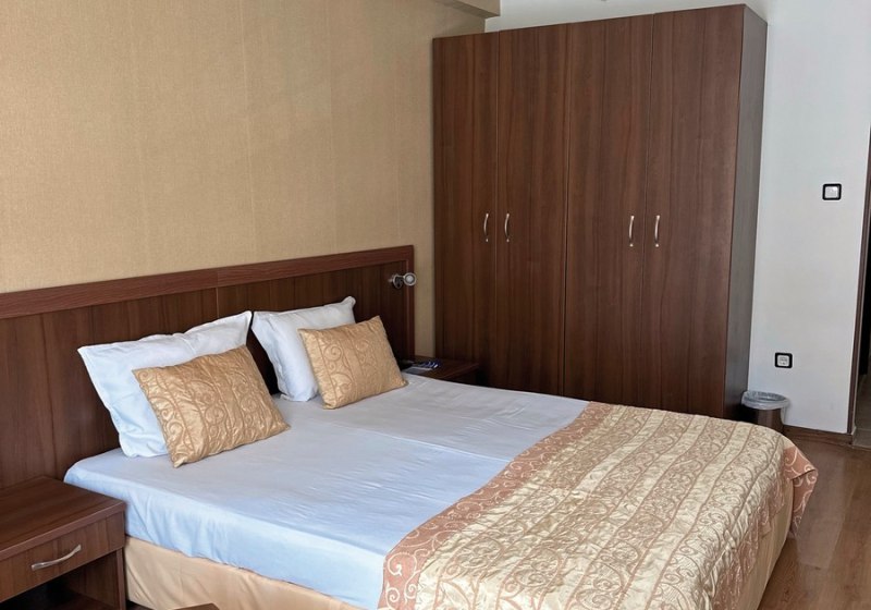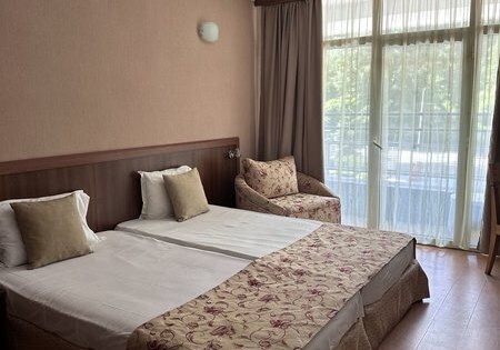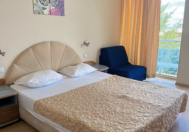 Goldstrand und Varna liegen Euch spürbar nah: Der Sandstrand ist etwa 400 Meter entfernt, das Meer rund 500 Meter. Ins Umfeld streuen sich kurze Distanzen – zum Stadtzentrum etwa 500 Meter, zur Disco rund 50 Meter, Bars und Park in etwa 100 Metern, Restaurants und Einkaufsmöglichkeiten bei circa 150 Metern. Die ÖPNV-Anbindung in etwa 50 Metern macht Ausflüge einfach. Die Lage wird zugleich als zentral und ruhig beschrieben – ihr bewegt Euch zwischen Promenadenleben und grünen Passagen. Zum Flughafen Varna sind es ungefähr 25 Kilometer. So bleibt die Tagesplanung flexibel: morgens Strand, mittags Garten oder Pool, abends ein Schritt zur Livemusik oder in die Bars. Die Orientierung fällt leicht, denn fast alles Notwendige liegt in kurzer Gehweite.