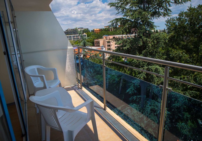 - Balkon standard: Alle Zimmer mit Balkon für Luft und Blick ins Grüne.