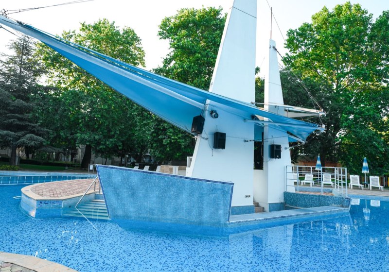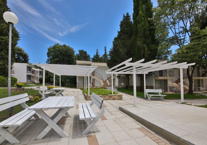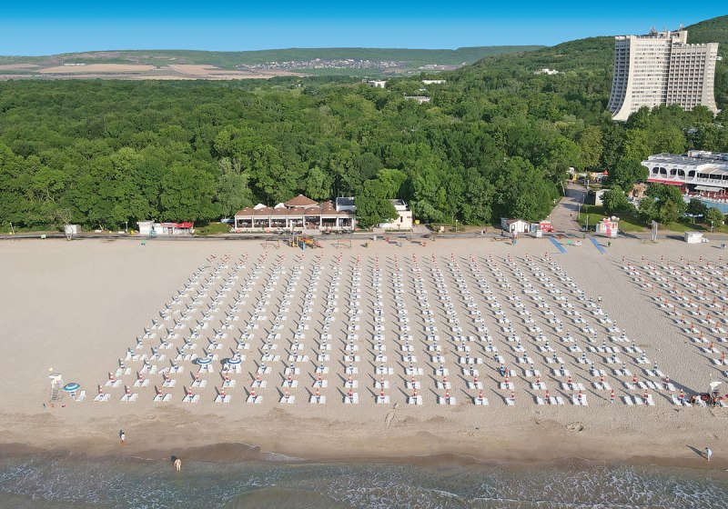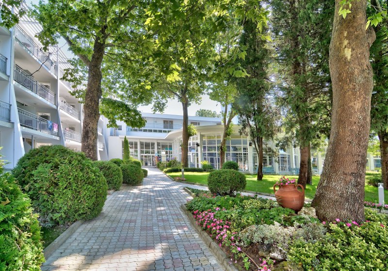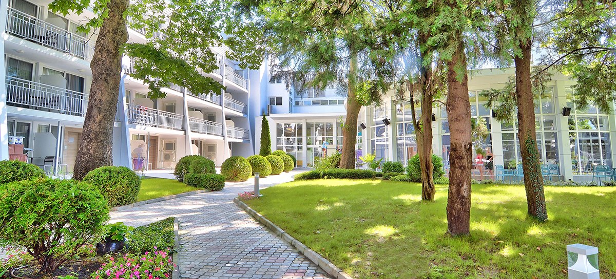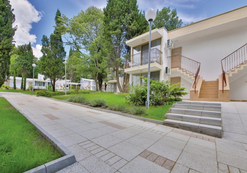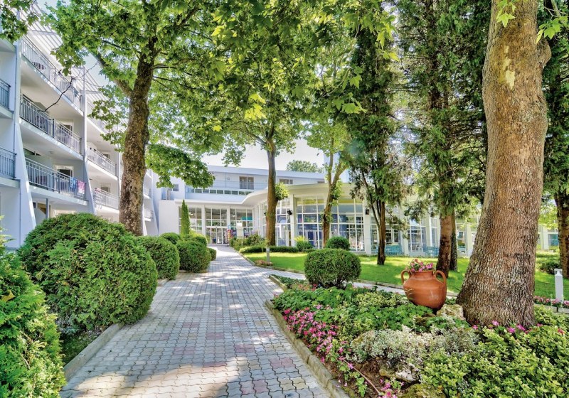 Ihr urlaubt in Albena an Bulgariens Küste, eingebettet in ein parkähnliches Gelände. Der Sandstrand liegt etwa 950 Meter entfernt – eine angenehme Distanz für einen Spaziergang aus dem Grünen an die See. Der Flughafen Varna ist ungefähr 40 Kilometer entfernt, Burgas rund 140 Kilometer. Diese Werte geben Euch Orientierung bei An- und Abreise, ohne Hektik in den Tagesablauf zu bringen. Der angrenzende Wasserpark AquaMania erweitert die unmittelbare Umgebung um einen dynamischen Fixpunkt. So bleibt die Lage ausgewogen: grüne Ruhe im Areal, Aktivität direkt nebenan, Strandnähe mit klarer Distanzangabe. Sonnenschirme stehen bereit, während die Wege durch das Resort übersichtlich bleiben. Wer Struktur mag, findet sie hier – vom Frühstück bis zum Strandspaziergang, vom Pooltag bis zum Abendprogramm. Highlight: Kurzer Weg ins Grüne und klare 950 Meter bis zum Strand.