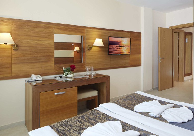 Im Haus erwartet Euch eine 24-Stunden-Rezeption, ein Lift zu den fünf Etagen und praktische Services wie Minimarkt, Wechselstube und WLAN-Hotspot. Kulinarisch startet Ihr mit Frühstücksbuffet, am Abend greift Ihr erneut am Buffet zu oder nehmt einen Drink an Bar und Poolbar. Zimmer mit Meerblick sind verfügbar, Apartments bieten ein separates Schlafzimmer, Studios eine Sitzecke – komfortabel klimatisiert mit Kühlschrank und Sat-TV. Highlight: Strandnähe mit Promenade, kurzer Weg vom Zimmer an den Sand.