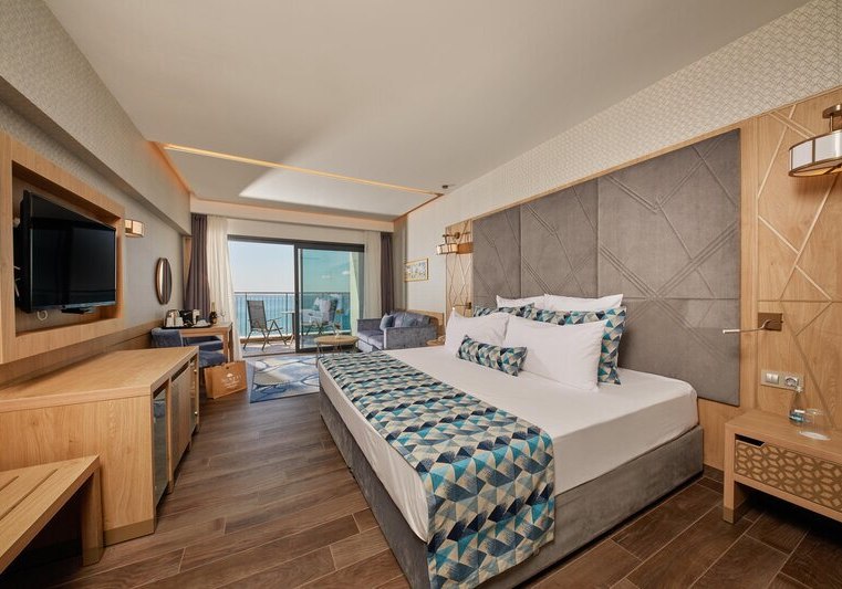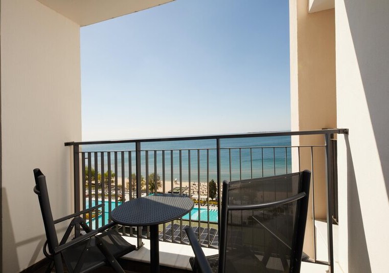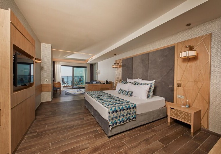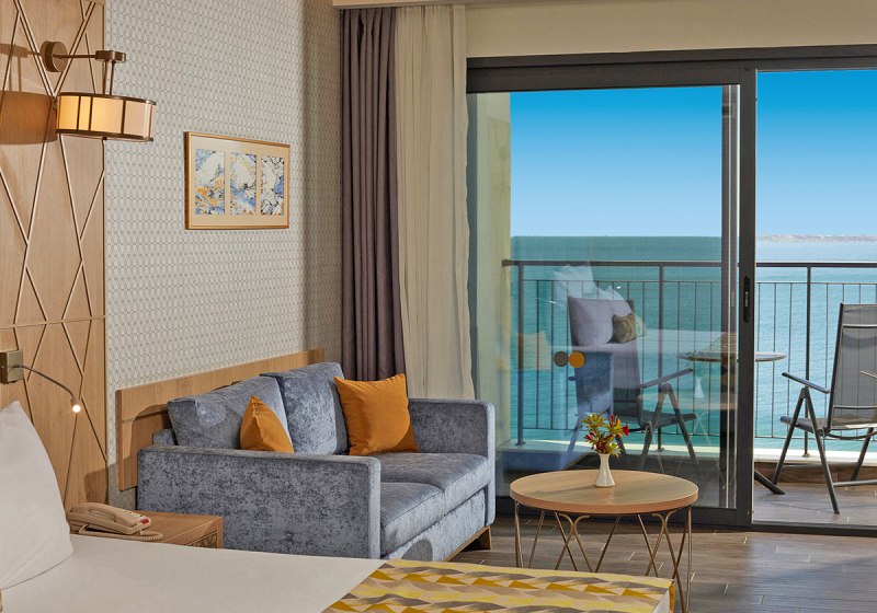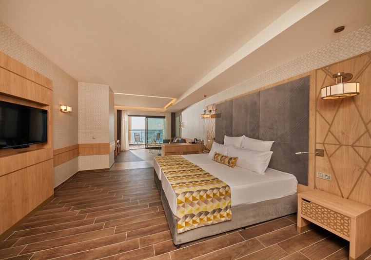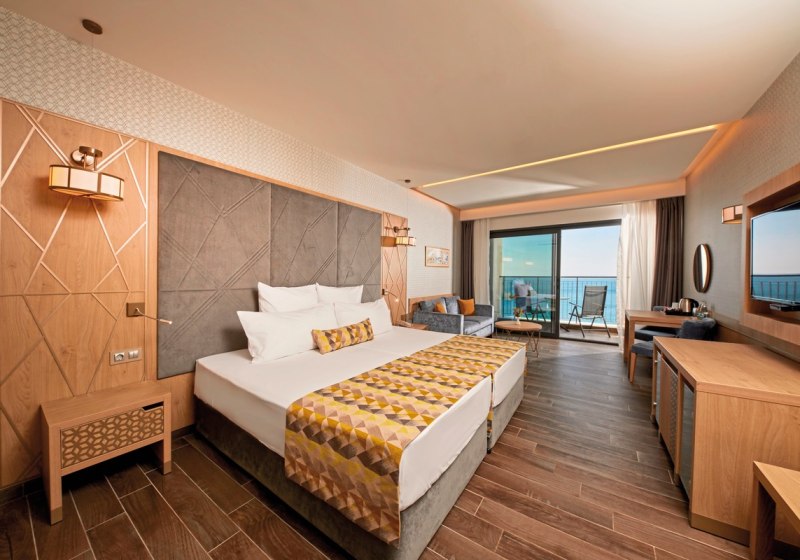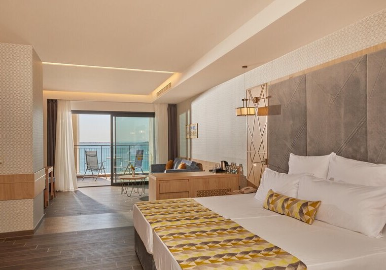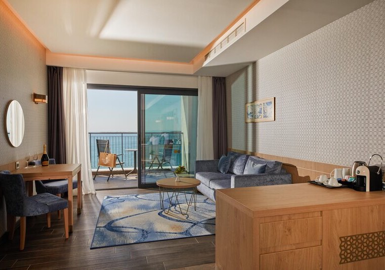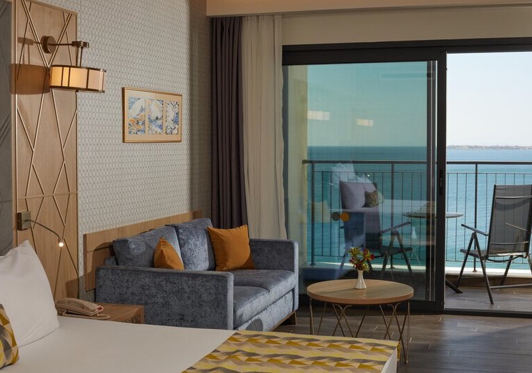 334 Zimmer und Suiten bieten Balkon oder Terrasse, teils mit Meerblick. Innen erwartet Euch ein klarer, moderner Stil mit 43-Zoll-Sat-TV, WLAN, Safe und Minibar. Klimaanlage, Kaffee- und Teezubereiter sowie Telefon ergänzen den Komfort, Nichtraucherstatus ist durchgängig umgesetzt.