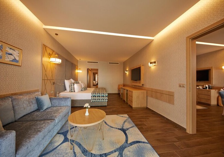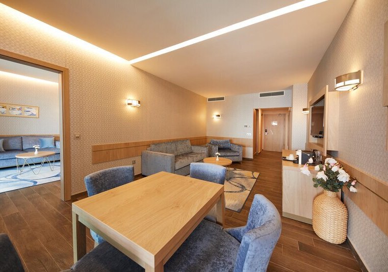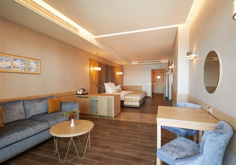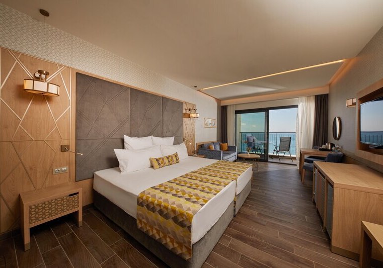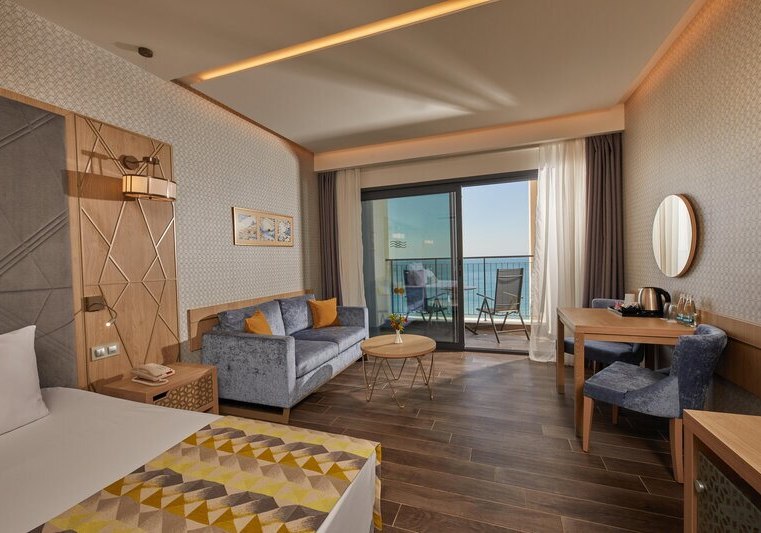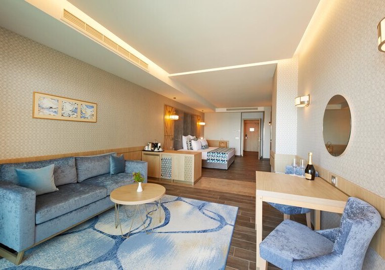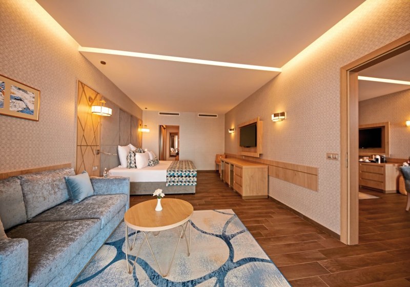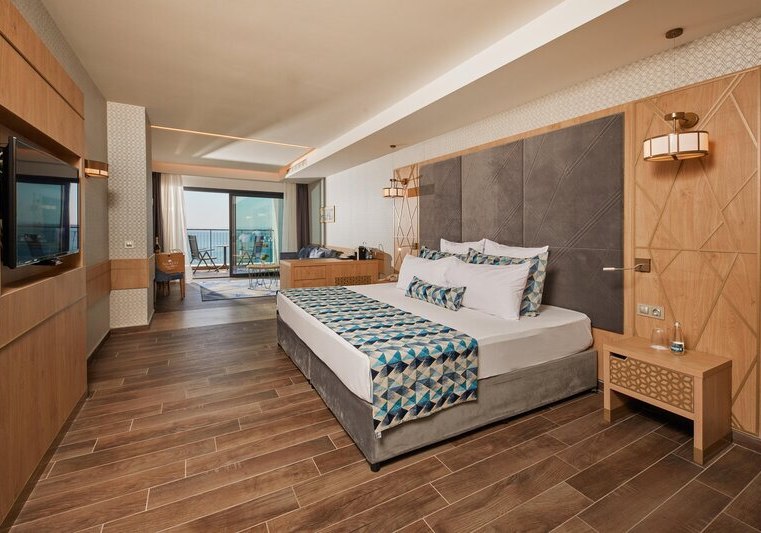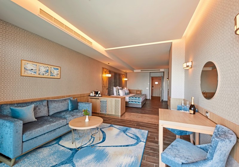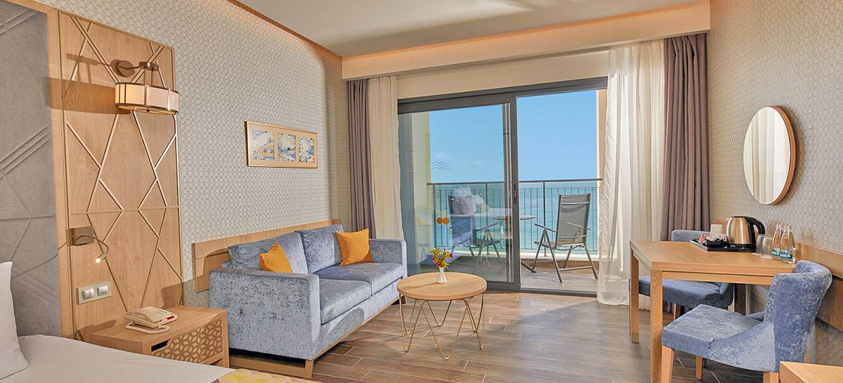 334 Zimmer und Suiten bieten Balkon oder Terrasse, teils mit Meerblick. Innen erwartet Euch ein klarer, moderner Stil mit 43-Zoll-Sat-TV, WLAN, Safe und Minibar. Klimaanlage, Kaffee- und Teezubereiter sowie Telefon ergänzen den Komfort, Nichtraucherstatus ist durchgängig umgesetzt.