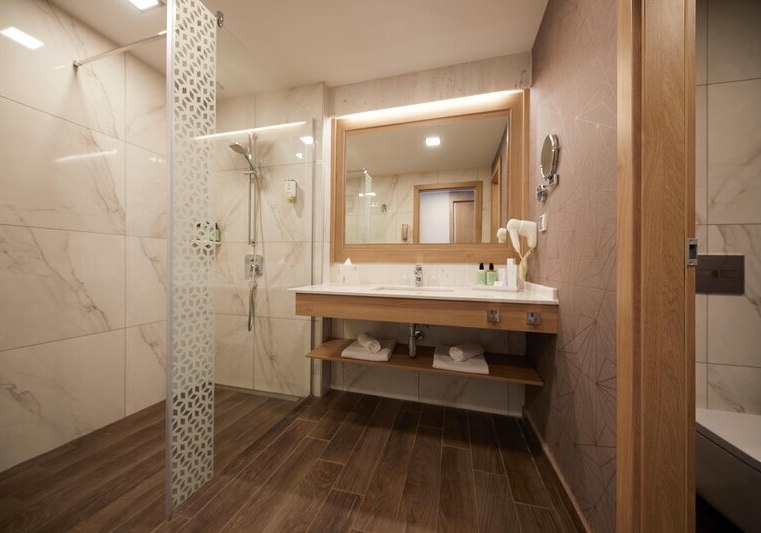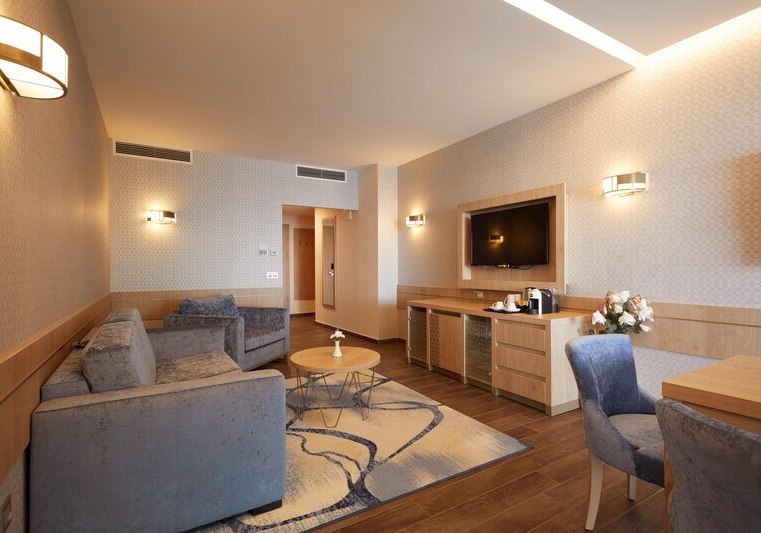 - Ausstattung: Zimmer mit 43"-TV, Minibar, Safe und Klimaanlage.