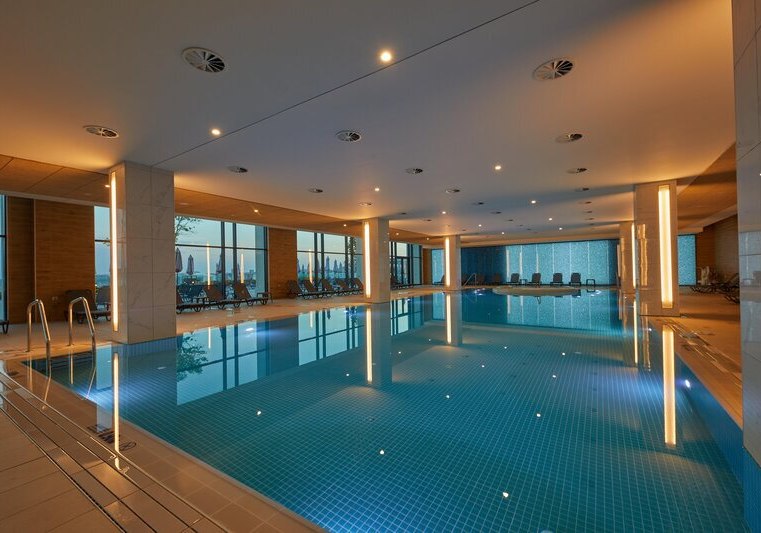 Im Spa findet Ihr Ruhe mit klarer Struktur: Innenpool, Sauna und Dampfbad bilden das Herzstück. Massagen sowie Wellness- und Beautybehandlungen erweitern das Spektrum, ergänzt durch einen Whirlpool. Die Zonen wirken geordnet und zurückhaltend gestaltet, ideal für fokussierte Auszeiten.