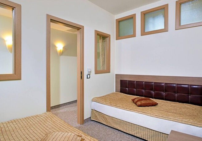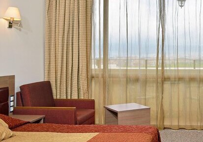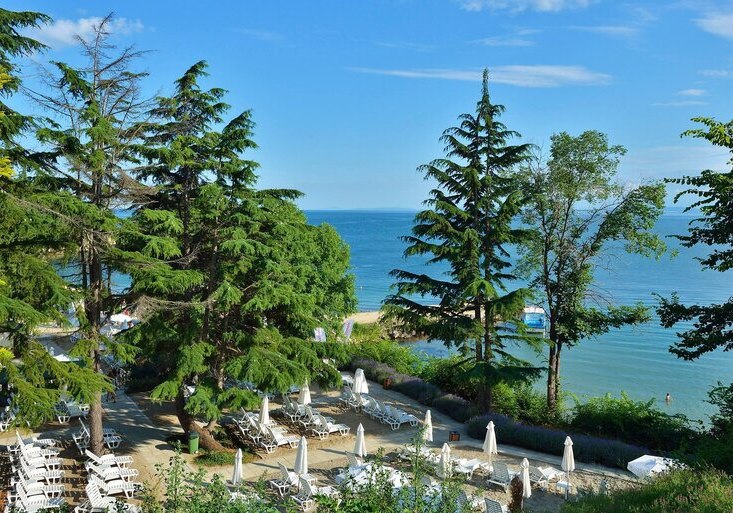 Ihr wohnt in Nessebar an einer Badebucht, die durch einen Park vom Strand getrennt ist. Das setzt einen angenehmen Übergang vom lebhaften Resort zum Meer. Zur UNESCO-geschützten Altstadt von Nessebar sind es rund 2,5 Kilometer, perfekt für einen Spaziergang mit historischen Eindrücken und Meerblicken. Nach Sonnenstrand beträgt die Distanz etwa 6 Kilometer, zum Flughafen Burgas rund 30 Kilometer, was An- und Abreise planbar macht.