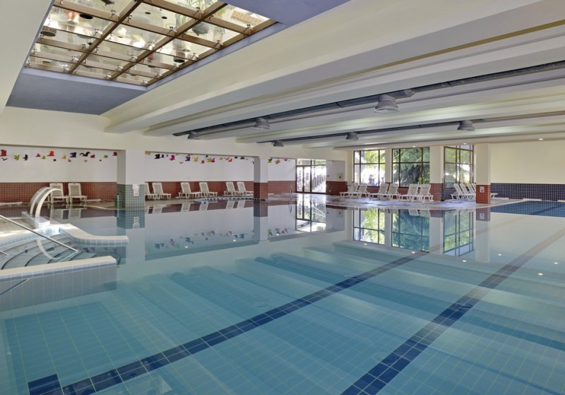 • Liegestühle • Hallenbad • Außenpool • Sonnenschirme • Poolbar • Badetücher • Wasserrutsche • Liegewiese • Wasserpark • Pool • Sonnenterrasse