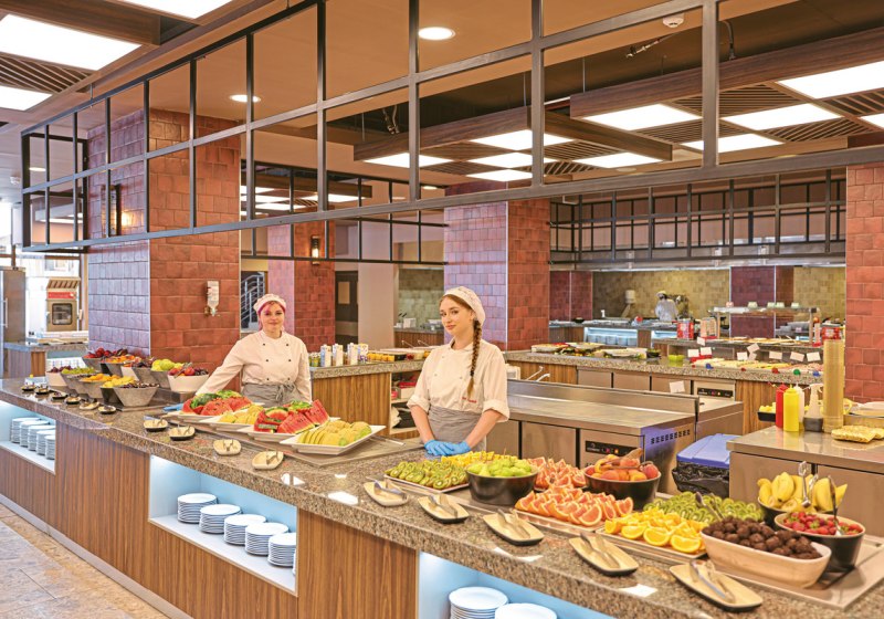 Mit All Inclusive nehmt Ihr Euch Zeit fürs Probieren: Hauptrestaurants tragen den Tagesrhythmus, während Themenrestaurants asiatische, italienische, spanische, japanische und amerikanische Küchen anbieten. Dazu kommen Kindermenüs sowie vegetarische, vegane und allergikerfreundliche Gerichte – ein klares Plus für planbare und vielfältige Verpflegung.