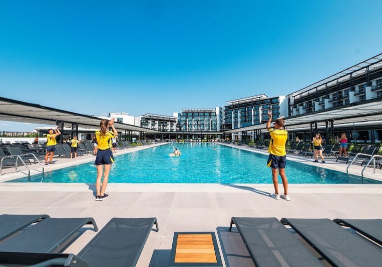 Im Voya Beach Resort trefft Ihr auf ein Resort, das Familienfreundlichkeit und Strandnähe schnörkellos verbindet. Direkt am Meer gelegen, öffnet sich Euch eine Anlage mit Aquapark, Amphitheater und privaten Strandabschnitten. Weitläufige Poolflächen, ein strukturierter Tagesrhythmus aus Sport, Spiel und abendlicher Show schaffen Klarheit im Ablauf. Hier plant Ihr Eure Tage zwischen Wasser, Bühne und entspannten Momenten im Spa – ohne lange Wege, ohne Kompromisse bei Auswahl und Struktur.