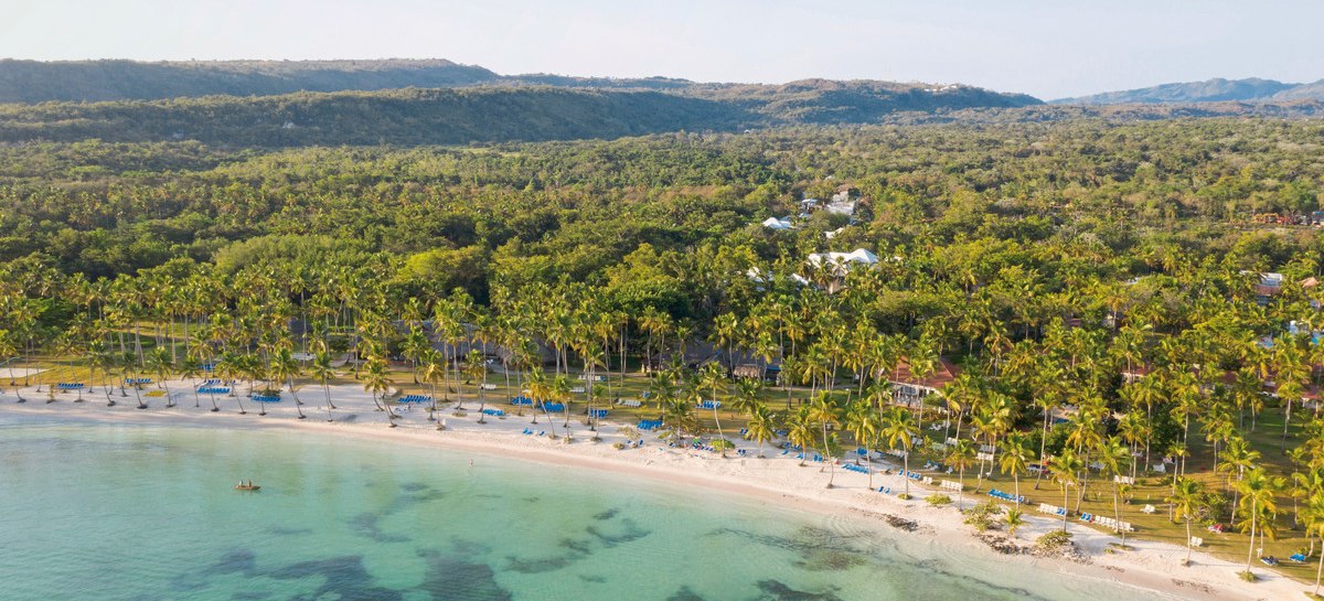 Ihr wohnt nahe Las Galeras auf der Halbinsel Samaná – direkt an einer sichelförmigen Badebucht mit etwa 500 Metern Sandstrand. Das Umfeld wirkt naturgeprägt und maritim, die Bucht schützt vor der offenen See und bietet klare Orientierung zwischen Strand, Gärten und Wohngebäuden. Bis Samaná sind es rund 25 Kilometer, der Flughafen Puerto Plata liegt etwa 200 Kilometer entfernt. Die Strandbar und die Wassersportstation bringen die Lage auf den Punkt: kurze Wege ans Wasser, Blick auf die Bucht und ein strukturiertes Tagesgefühl zwischen Meer, Poolbereichen und Terrasse. So entsteht ein ruhiger, strandnaher Tagesrhythmus mit verlässlichen Distanzen und gut lesbarer Umgebung.