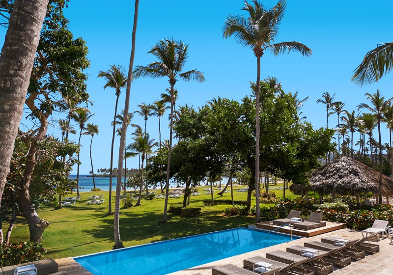 Im Wyndham Alltra Samana spürt Ihr die Nähe zur Natur an einer sichelförmigen Badebucht mit rund 500 Metern Sandstrand. Zwischen Palmen und zehn einstöckigen Wohngebäuden verteilen sich ruhige Wege, drei Süßwasserpools und sonnige Terrassenbereiche. Die Atmosphäre wirkt entspannt, freundlich und konzentriert auf erholsame Strandtage mit klarer Struktur: kurze Wege, übersichtliche Zonen, viel Platz im Freien.