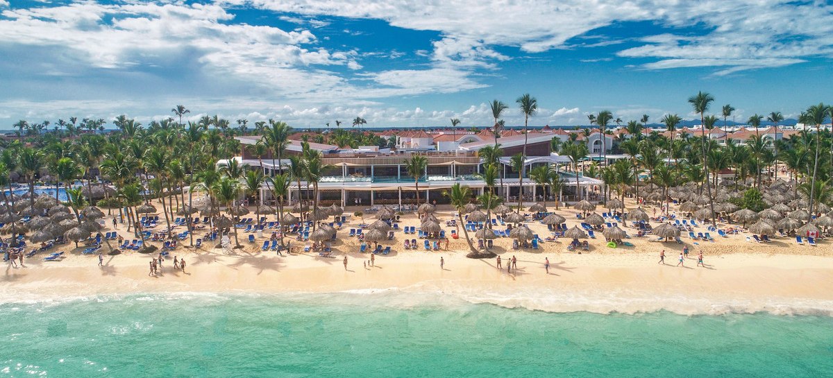 Ihr logiert an der Playa Bávaro in Punta Cana, direkt am Strand und etwa 25 Minuten vom Flughafen Punta Cana entfernt. Die Beachfront prägt das Tagesgefühl: kurze Wege zum Wasser, breite Sonnenschirme und Liegen am Strand und an den Pools, dazu das nahe Bahia Principe Village als lebendiger Orientierungspunkt im Resort.