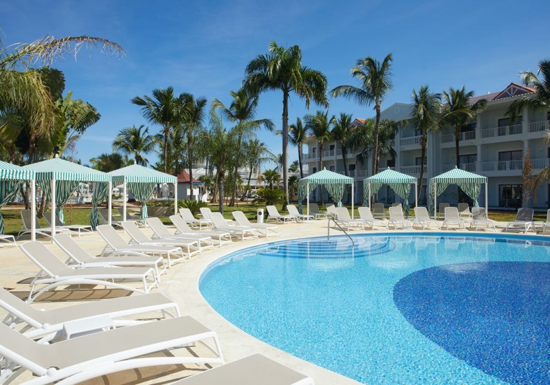 Die Anlage wirkt großzügig und klar strukturiert: zwei Außenpools mit Sonnenterrassen, dazu Liegen, Sonnenschirme und Handtücher an Pool und Strand. Das kostenlose WLAN deckt die gesamte Anlage ab, ein interner Shuttle verbindet die Bereiche. Freizeitorte wie Casino, Theatersaal und das Bahia Principe Village setzen lebendige Akzente.