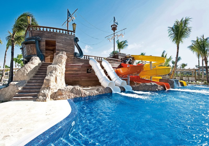 Die öffentlichen Bereiche wirken großzügig und funktional organisiert. Vier Pools, darunter ein Erwachsenenpool und ein Kinderpool, verteilen die Badepunkte. Für Familien stechen der Barcy Wasserpark und Pirates Island Wasserpark (gegen Gebühr) hervor. Liegen und Badetücher stehen an Strand und Pool bereit, die Wege verbindet ein Minizug.