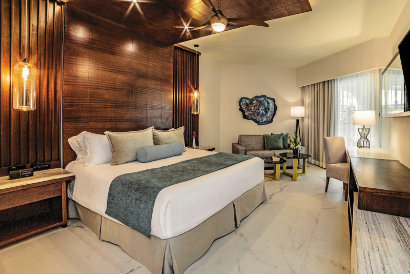 Das Resort ist ein Nichtraucherhotel. Es hat 464 klimatisierte Suiten mit moderner, farbenfreudiger Einrichtung, die sich in mehreren Gebäuden auf dem Gelände verteilen. Zur Ausstattung gehören Balkon oder Terrasse, Schreibtisch, Flachbildfernseher, Safe und gefüllte Minibar, große Bäder mit Fön und Amenities. Die „Club Master Suiten“ haben zusätzlich eine Terrasse mit privatem Whirlpool und Zugang zur Poollandschaft.Gastronomie / Restaurants