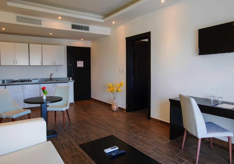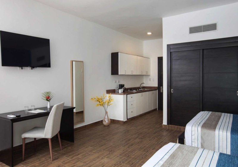 Ihr wohnt in klar geschnittenen Zimmern mit Klimaanlage, WLAN, TV, Safe, Telefon und Föhn. Viele Einheiten verfügen über Balkon oder Terrasse; Stadtblick und auf Wunsch Zimmer mit Poolblick schaffen Orientierung und Ruhe. Schallisolation unterstützt erholsamen Schlaf. Praktisch: Kühlschrank oder Kochnische, Kaffee‑/Teezubereiter und Schreibtisch für fokussiertes Arbeiten.