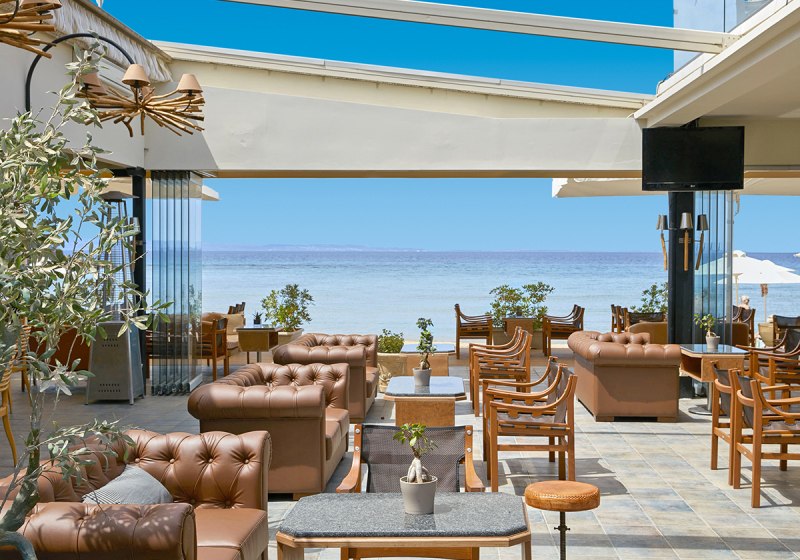 Zwischendurch versorgt Euch die Beach-Bar Ammos direkt am Strand, ergänzt von einer Bar sowie einer Tee- und Vitaminbar für leichte Pausen. So verläuft der kulinarische Tag in sinnvollen Etappen: unkompliziert am Buffet, gerichtet am Tisch, erfrischend an der Theke. Vegetarische Optionen und spezielle Angebote sind vorgesehen.