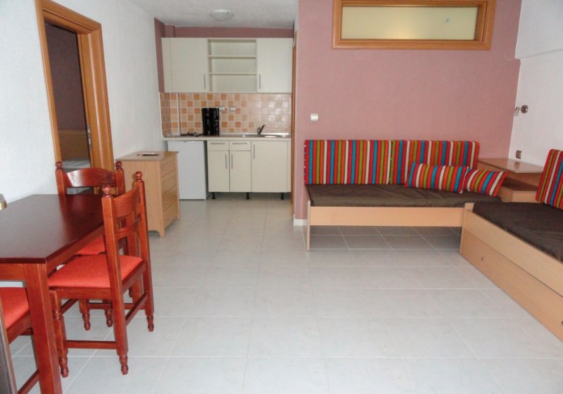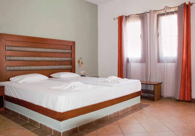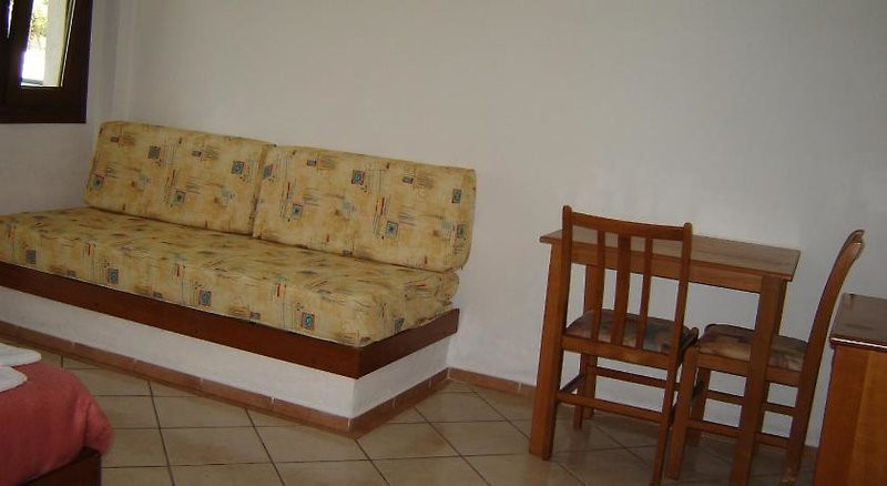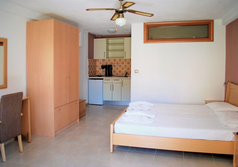 Ihr wohnt in klimatisierten Einheiten mit individuell regulierbarer Temperatur und zusätzlichem Ventilator. Der kombinierte Wohn-/Schlafraum ist Standard, Apartments bieten ein separates Schlafzimmer. Eine Kochnische mit Kühlschrank und Kaffee-/Teezubereiter macht Euch unabhängig; der Safe ist kostenpflichtig ausgewiesen. Balkon oder Terrasse öffnen den Blick, teils in den Garten.
