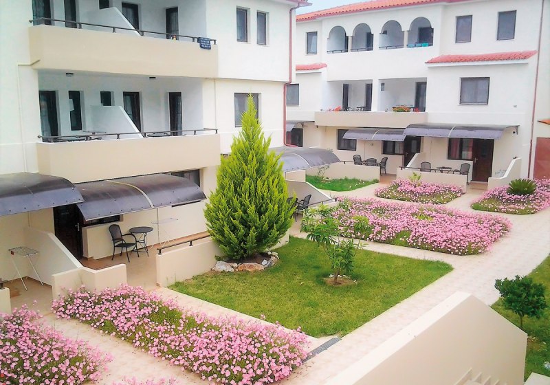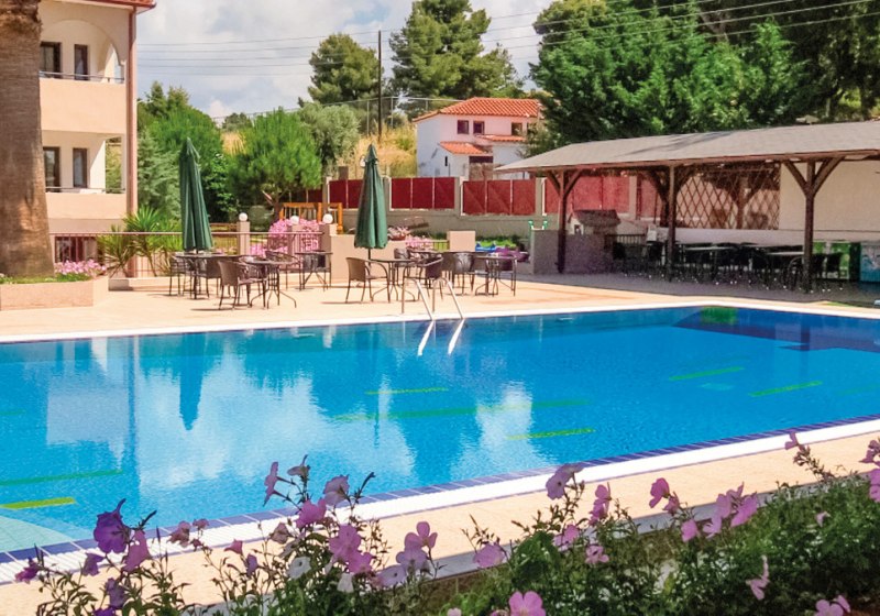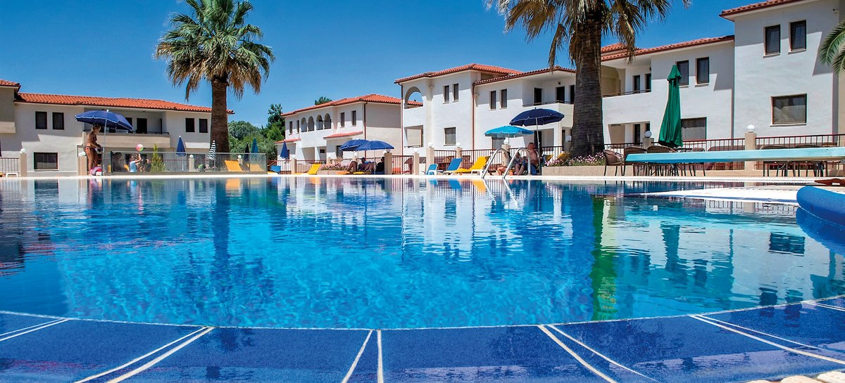 Amari empfängt Euch ländlich am Ortsrand mit 35 Wohneinheiten und entspannter Überschaubarkeit. Hier wohnt Ihr in Apartments mit kombiniertem Wohn- und Schlafbereich oder separatem Schlafzimmer. Der öffentliche Sand-/Kieselstrand liegt nur durch eine Straße getrennt gegenüber. Der Tag spielt sich zwischen Garten, Terrasse und Poolbereich ab, angenehm unaufgeregt und nah am Wasser.