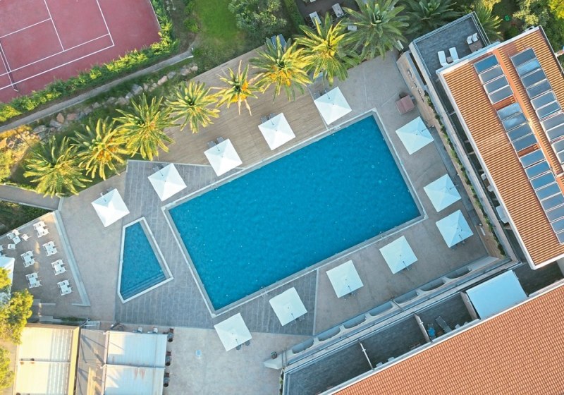 • Liegestühle • Außenpool • Sonnenschirme • Poolbar • Sonnenterrasse • Badetücher • Pool