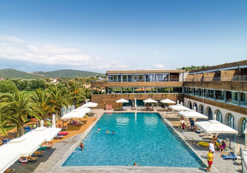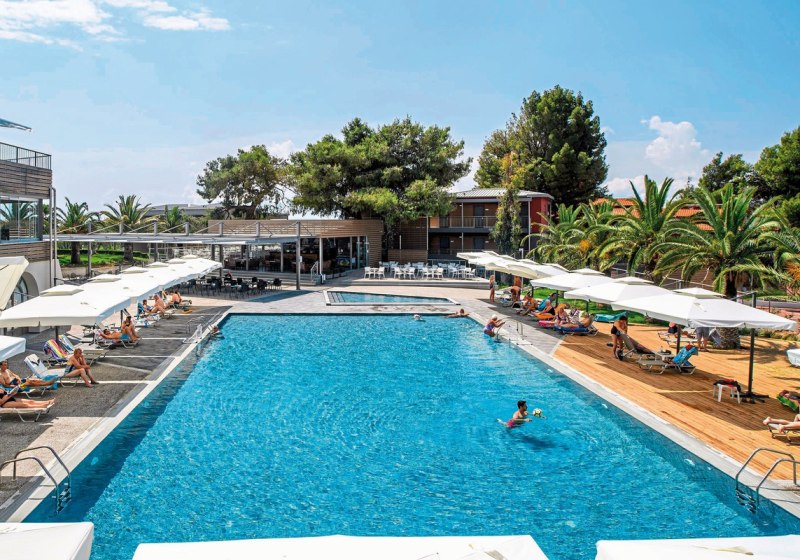 Im Blue Dolphin Hotel erwartet Euch ein entspanntes Strandresort am Rand von Metamorfosis auf der Halbinsel Sithonia. Die Anlage wirkt übersichtlich, mit Wegen durch den Garten, Sonnenplätzen am Pool und kurzen Distanzen zum Strand. Ihr wählt zwischen ruhigen Stunden oder einem Programm aus Sport, Wellness und leichten Abenden mit Livemusik. Strandferien sind hier unkompliziert: ankommen, auspacken, und in wenigen Schritten seid Ihr am Wasser. Highlight: Überschaubares Resort mit kurzen Wegen, ideal für Strandferien ohne Umwege.
