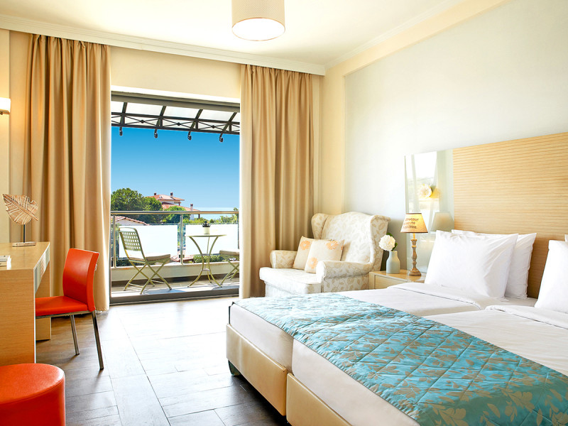 • Klimaanlage • Balkon (je nach Zimmerkategorie) • Haartrockner • Minibar (kostenfrei) • Safe (kostenfrei) • Meerblick (je nach Zimmerkategorie: seitlich) • Schlafsofa • Kaffee-/Teezubereiter • Terrasse • Fernseher • rollstuhlgerechte Zimmer (auf Anfrage) • WiFi (kostenfrei) • Gartenblick