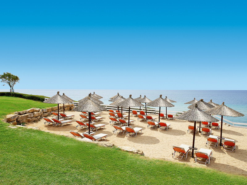 Strand• Strand (sanft abfallend, sandig) • Liegestühle (gegen Gebühr) • Sonnenschirme (gegen Gebühr) • Strandbar
