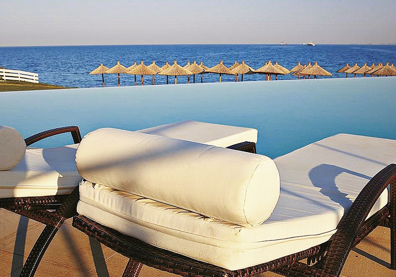 • Liegestühle • Außenpool • Sonnenschirme • Pool • Poolbar • Sonnenterrasse • Badetücher