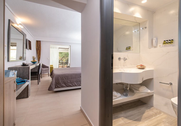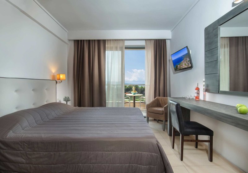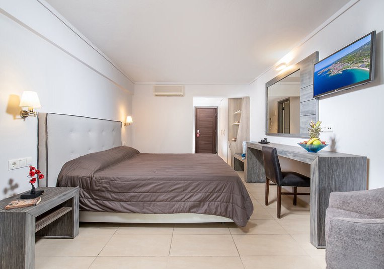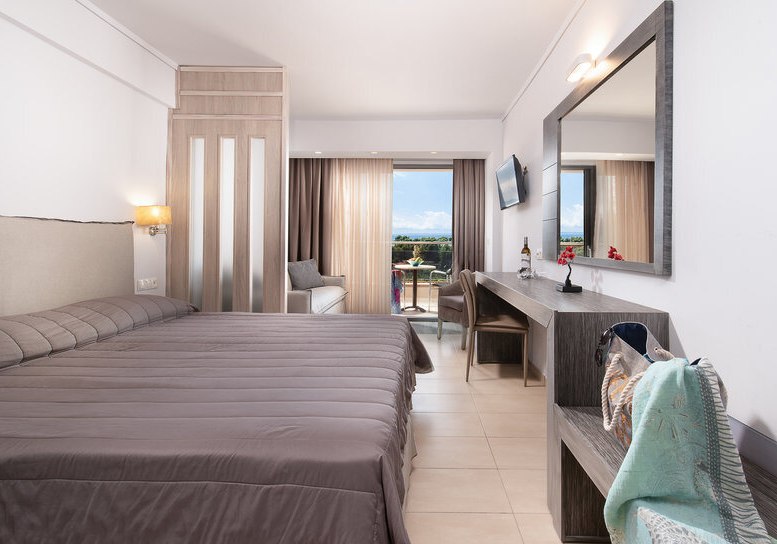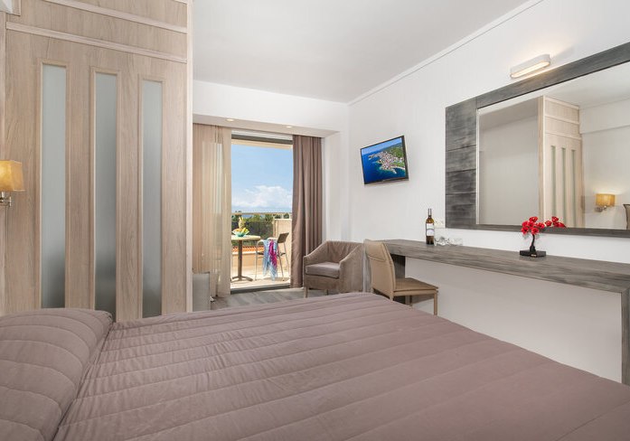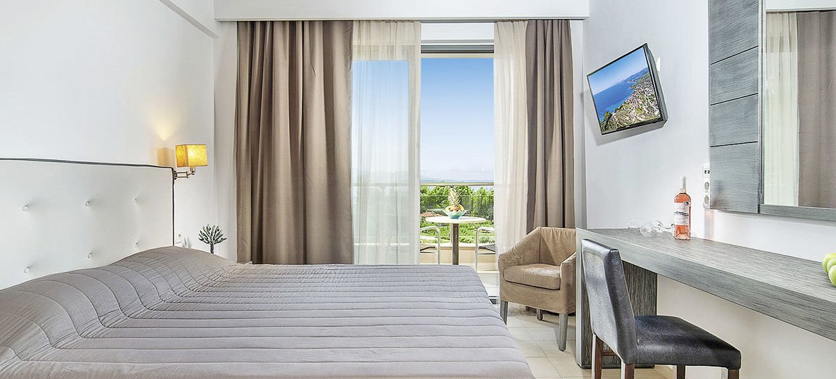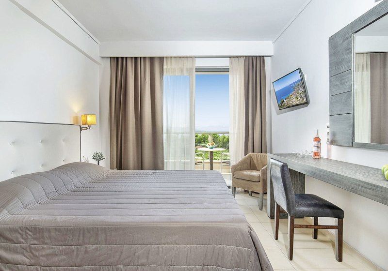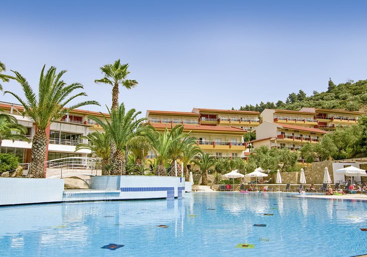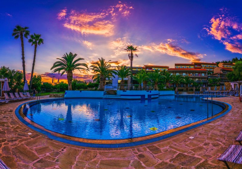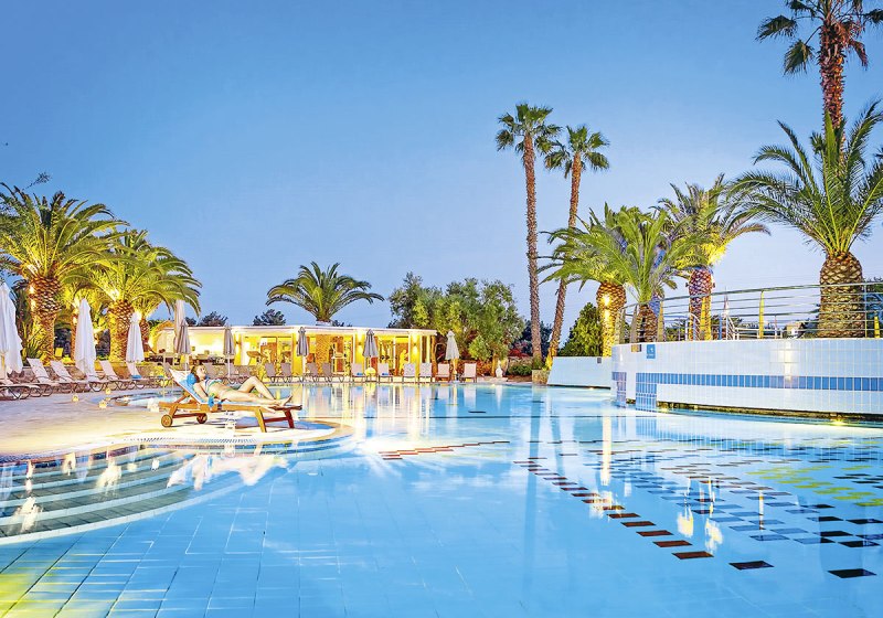Lagomandra Hotel & Spa verbindet die Ruhe einer geschützten Bucht mit der bequemen Nähe zu einer lebendigen Küstenregion. Ihr residiert in einem Ensemble aus Haupthaus und fünf Nebengebäuden mit nur zwei Etagen, was angenehm überschaubar wirkt. Die Gartenanlage rahmt einen Süßwasserpool, an dem Ihr Euch auf Liegen mit Schirmen ausstreckt. Familien finden mit Kinderbecken, Spielplatz und Miniclub klare Strukturen für entspannte Tage, während Paare das Spa und die Taverne am Strand schätzen. Highlight: Überschaubares Resort mit Grünflächen und Poolzone, ideal für fokussierte Erholung.