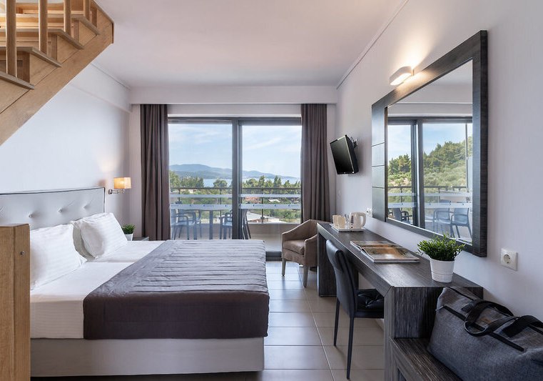 Wellness mit Saunen, Hallenbad und Anwendungen sowie Fitness, Ballsport und Wassersport decken unterschiedliche Rhythmen ab. Die Busanbindung vor der Tür und die Nähe zu Neos Marmaras halten Eure Ausflüge schlank. Für Paare und Familien, die verlässlich geplante Tage in den Ferien schätzen, ist dieses Haus eine überzeugende Wahl.
