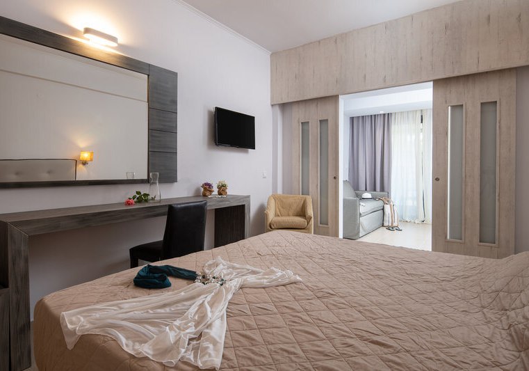 Lagomandra Hotel & Spa steht für kurze Wege, geordnete Strukturen und einen Strand mit Blauer Flagge, den Ihr in wenigen Minuten über eine Brücke erreicht. Buffet mit Live-Kochen, Strandtaverne und Live-Musik ordnen Eure Tage kulinarisch und abends stimmungsvoll. Familien profitieren von Miniclub, Kinderbecken und klaren Raumlösungen.
