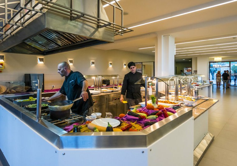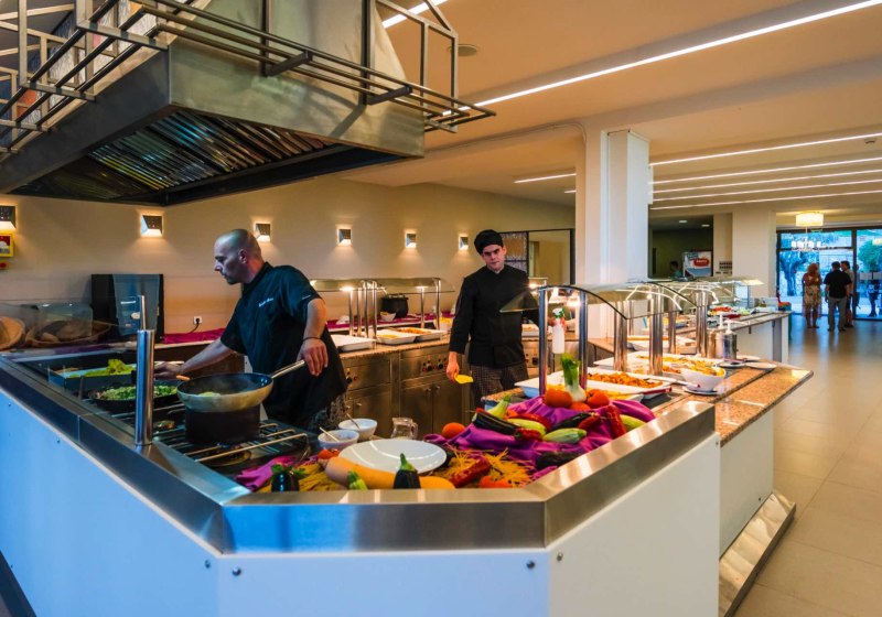 - Live-Kochen: Frische Zubereitung am Buffet bringt Bewegung in die Auswahl.