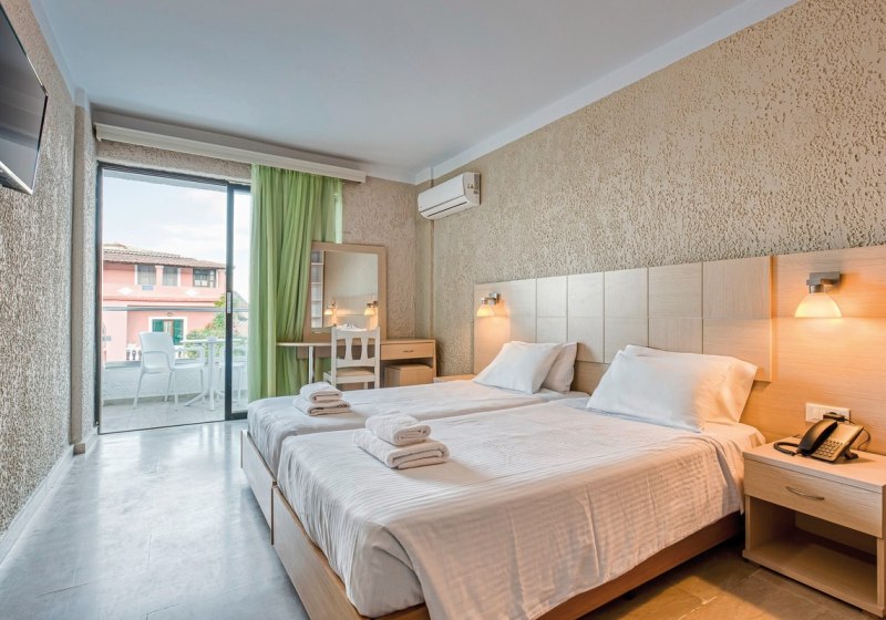 Wer übersichtliche Wege, solide Zimmer und flexible Verpflegung schätzt, findet hier eine praktische Adresse mit ruhigem Unterhaltungsprofil. Ihr bleibt mobil durch Bus und Taxi in der Nähe und erreicht Korfu‑Stadt ebenso unkompliziert wie die umliegenden Strände.