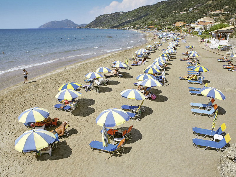 Am grünen Hang von Agios Gordios wohnt Ihr mit Übersicht über Ort und Küste. Das Zentrum erreicht Ihr nach etwa 600 Metern, den Strand nach ungefähr 900 Metern. Der Weg führt bergab und verbindet Euch mit Tavernen, kleinen Läden und dem Strandabschnitt von Agios Gordios. Zurück geht es in die ruhige Höhe, wo der Blick freier wird und der Abend leiser klingt.