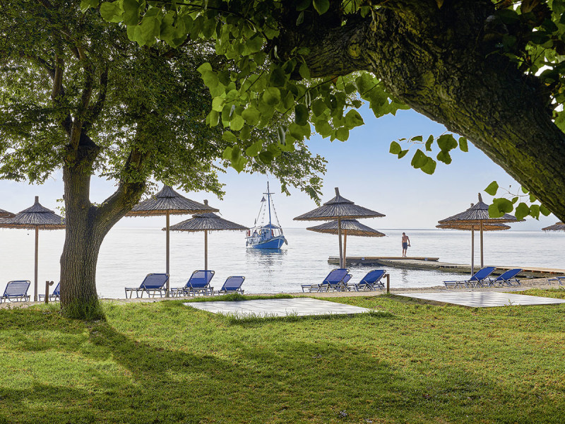 Ihr wohnt in Moraitika direkt am Kiesstrand, mit dem Ortszentrum in nur etwa 200 Metern Entfernung. Ein kurzer Spaziergang verbindet Badeplatz und Dorfalltag, die Bushaltestelle in der Nähe erleichtert Ausflüge über die Insel. Der Flughafen Korfu liegt rund 19 Kilometer entfernt, was die An- und Abreise planbar macht. Die Lage wirkt ruhig, gleichzeitig seid Ihr schnell bei Tavernen und Geschäften. Sonnenliegen stehen am Strand und am Pool bereit, Badetücher erhaltet Ihr gegen Kaution. An der Strandbar wartet tagsüber Erfrischung, abends wird sie zur Bühne für das leichte Unterhaltungsprogramm. Highlight: Direkte Strandposition mit kurzem Weg ins Zentrum von Moraitika.