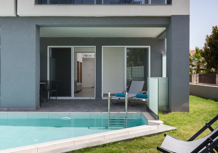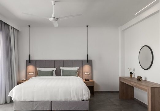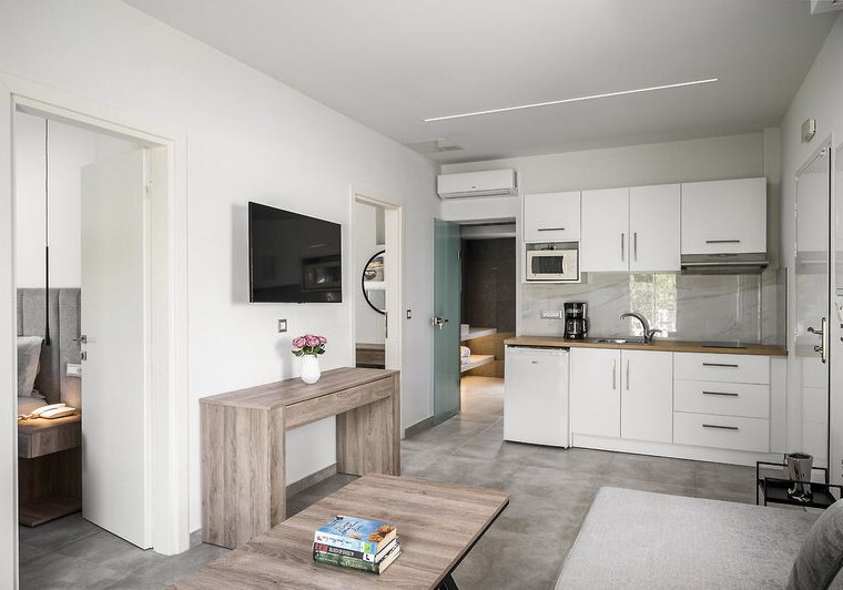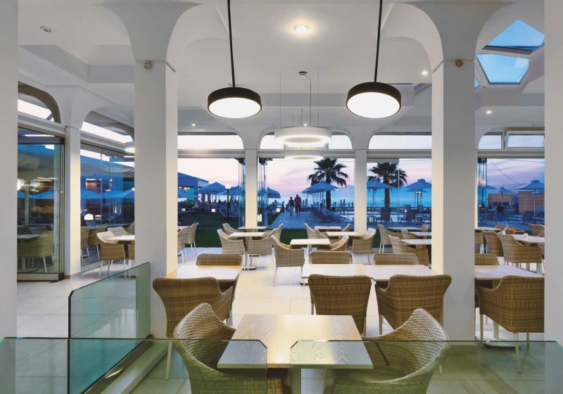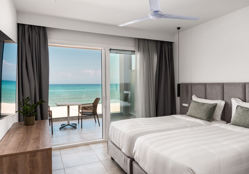 Die Atmosphäre bleibt gelassen, mit einer Rezeption als Dreh- und Angelpunkt, Wi‑Fi in Lobby- und Poolbereich und einem Team, das mehrsprachig unterstützt. Zwischen Haupt- und Nebengebäuden verteilen sich Zimmer, Studios, Appartements und eine Villa. Kinder finden mit Kinderpool und Spielplatz schnell ihren Rhythmus, während Ihr Tischtennis oder den Padel-Platz nutzt. Highlight: Direkte Strandlage mit flach abfallender Küste, ideal für entspannte Badetage.