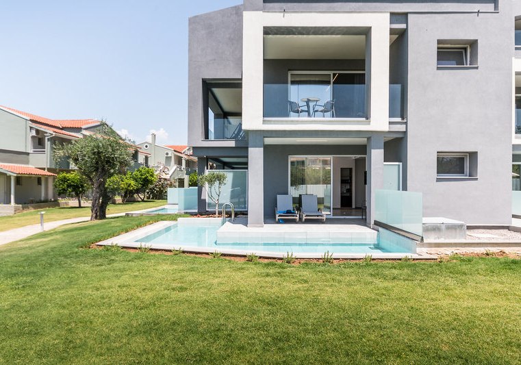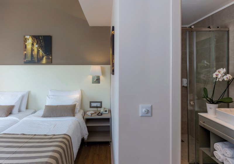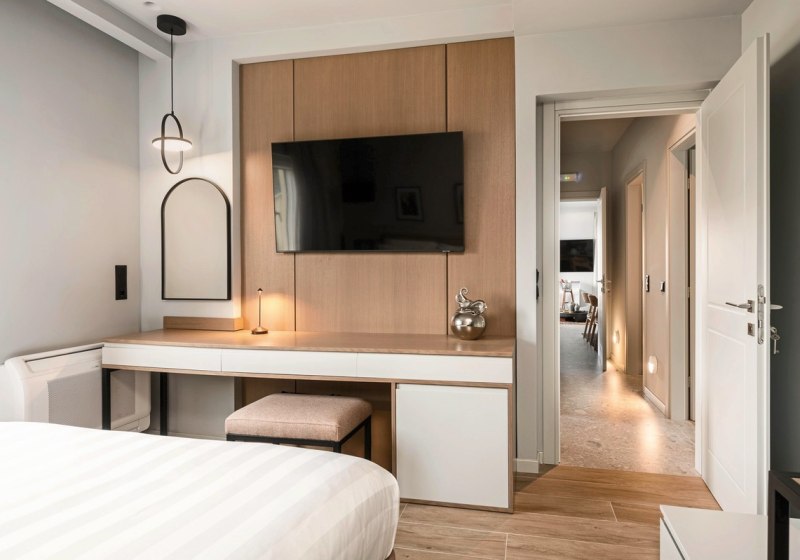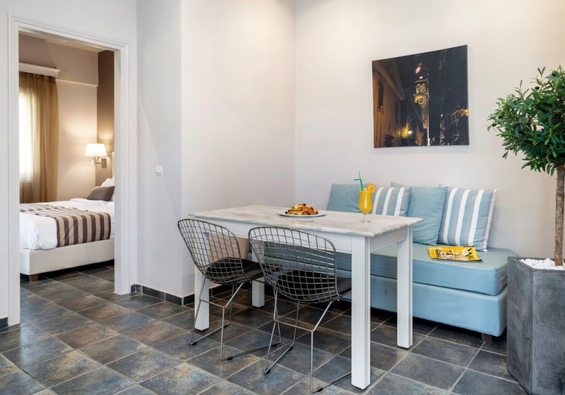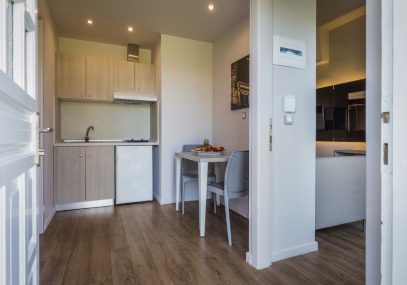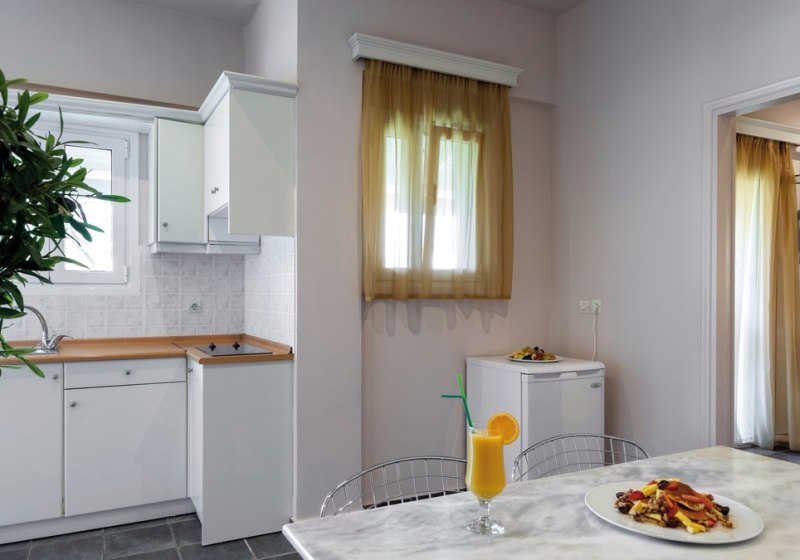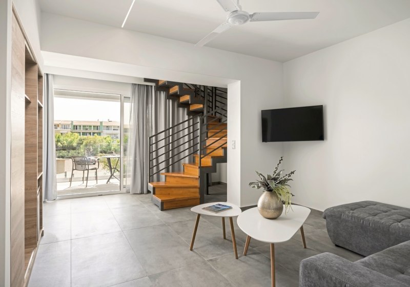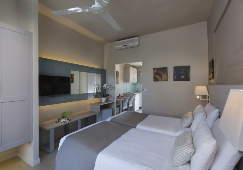Für mehr Raum stehen Studios mit Kitchenette, Appartements mit zwei Schlafzimmern, Maisonetten mit drei Schlafzimmern und zwei Bädern sowie eine Villa mit zwei Schlafzimmern und Kitchenette samt Geschirrspüler bereit. Familienvarianten und Zustellbetten sind ausgewiesen. Highlight: Breite Auswahl an Wohnoptionen – vom klassischen Doppelzimmer bis zur Villa.