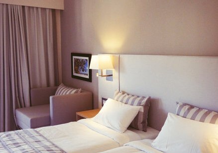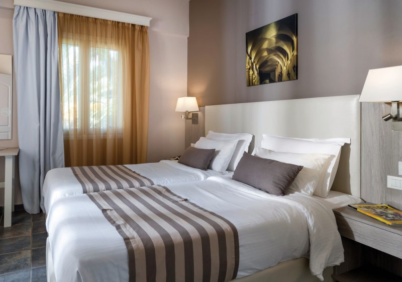 Die Zimmer verteilen sich auf Haupt- und Nebengebäude und bieten Balkon oder Terrasse, Bad mit Dusche oder Wanne, Föhn, individuell regulierbare Klimaanlage, Telefon, Sat‑TV und Kühlschrank. Zusätzliche Ausstattungen wie Safe, WLAN, Minibar, Bademantel, Hausschuhe, Kosmetikartikel und Vergrößerungsspiegel sind je nach Kategorie verfügbar.