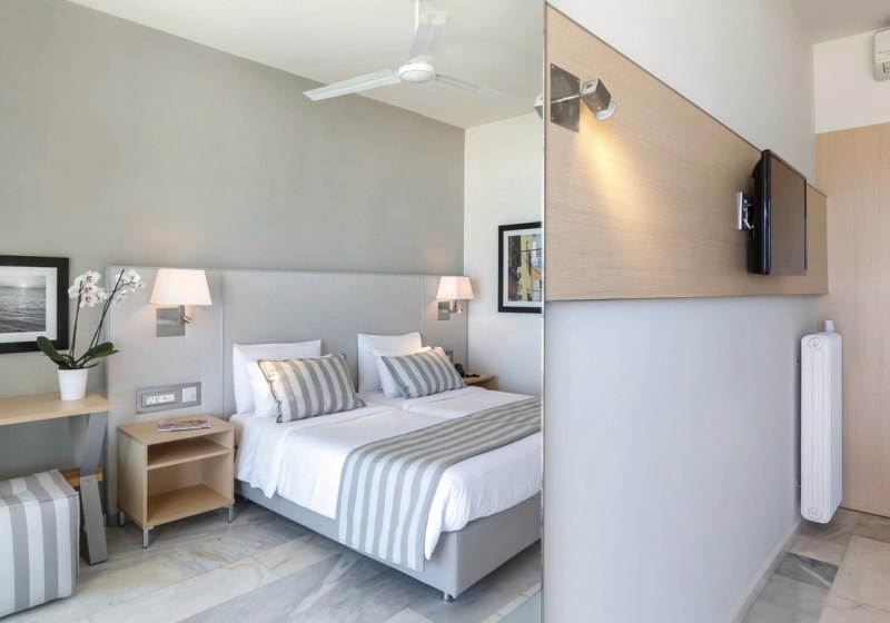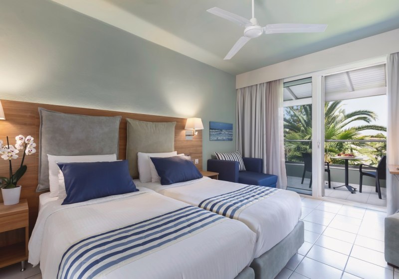 • Klimaanlage • Haartrockner • Sitzecke (je nach Zimmerkategorie) • Minikühlschrank • Minibar • Safe (gegen Gebühr) • Fernseher • WiFi (kostenfrei) • Balkon oder Terrasse • Balkon (je nach Zimmerkategorie) • Kühlschrank • Kochnische • Meerblick (je nach Zimmerkategorie: seitlich) • Kaffee-/Teezubereiter • Terrasse • Ventilator