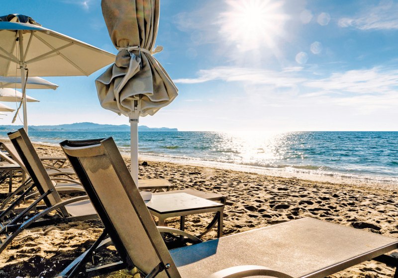 - Am Wasser: Liegen und Sonnenschirme am Strand laut Angebot.
