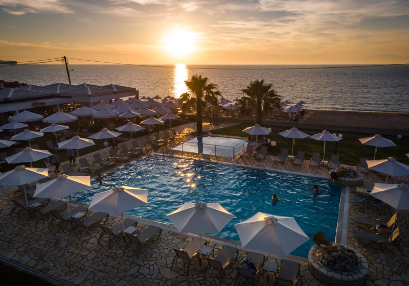 Das Acharavi Beach Hotel verbindet direkte Strandlage, gut bewertete Küche und eine breite Zimmerauswahl mit klaren Wegen und durchdachten Services. Ihr lebt zwischen Pool, Garten und Meer und organisiert Eure Tage ohne Aufwand. Unterhaltung bleibt angenehm dosiert.