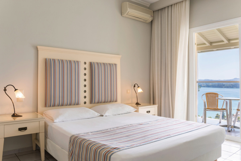 Das Hotel bietet verschiedene Zimmeroptionen, die alle mit Klimaanlage, Heizung, Balkon oder Terrasse und Meerblick ausgestattet sind. Darüber hinaus verfügen die Zimmer über ein Badezimmer mit Badewanne oder Dusche, einen Safe, einen Telefonanschluss, eine Minibar und einen Fernseher.