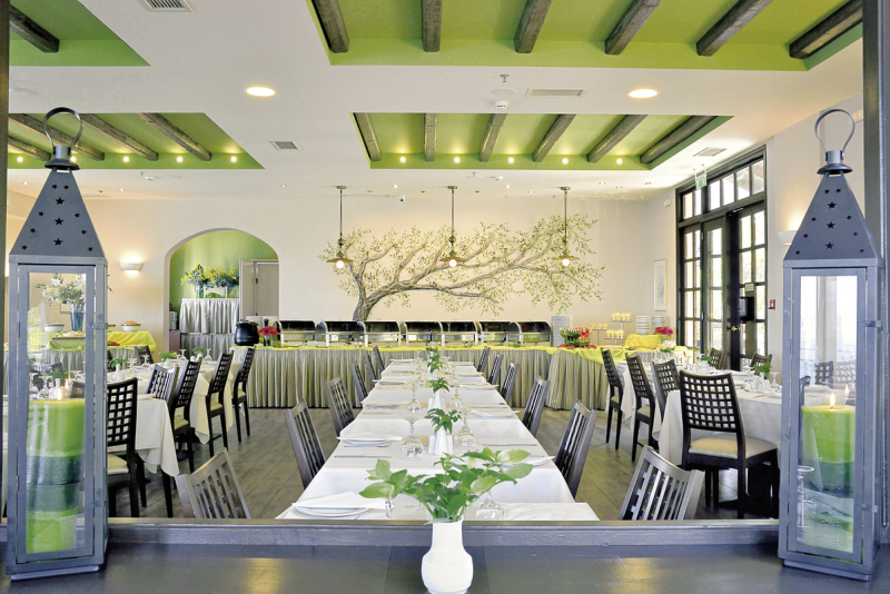 In puncto Gastronomie bietet das Hotel Frühstück und Abendessen sowie eine Snackbar für kleine Imbisse zwischendurch. Es gibt auch eine Bar und eine Café, die einen wunderschönen Blick auf das Meer bieten und der perfekte Ort für einen entspannten Abend mit Familie oder Freunden ist.