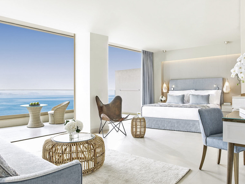 Für Genussmomente sorgen Nespresso-Maschine, Kaffee-/Teezubereiter sowie Minibar/Kühlschrank. Ein möblierter Balkon erweitert den Wohnraum nach draußen. Je nach Lage öffnen sich Ausblicke bis hin zu Garten-, Pool- oder Meerblick. Familienfreundliche Optionen und getrennte Schlafbereiche sind vorgesehen.
