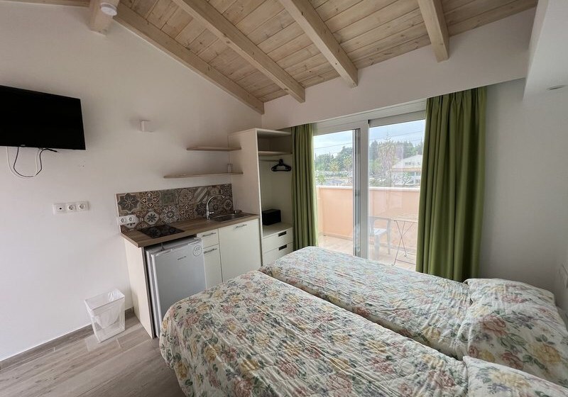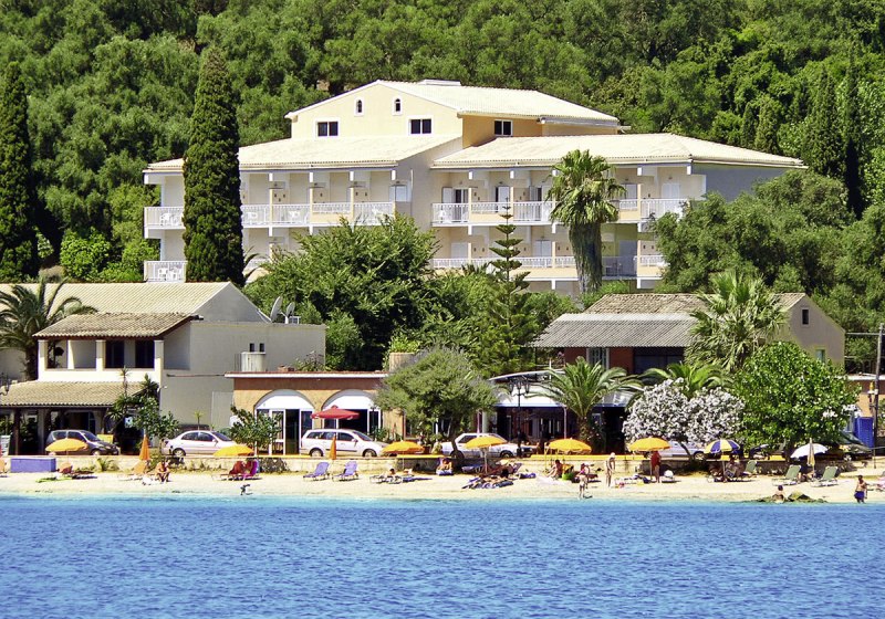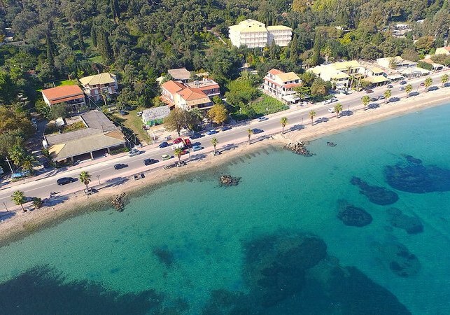 Im Ipsos Beach Hotel lebt Ihr nah am Wasser und doch mitten im lebendigen Ipsos. Der Kies-Sandstrand liegt nur wenige Schritte entfernt, das Zentrum mit seinen Tavernen und kleinen Läden ebenso. Die Atmosphäre ist unkompliziert, freundlich und geradlinig – ideal, wenn Ihr Strandnähe und kurze Wege schätzt.