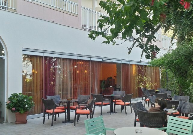 Zwischen Außenpool, Sonnenterrasse und schattigen Ecken findet Ihr entspanntes Ferienfeeling. Familien freuen sich über das separate Kinderbecken und praktische Familienzimmer mit gemeinsamem Balkon. Wer es einfach und funktional mag, fühlt sich hier wohl: klare Zimmer, verlässliche Basics, dazu Frühstück auf der Terrasse, bevor Ihr zum Strand startet.