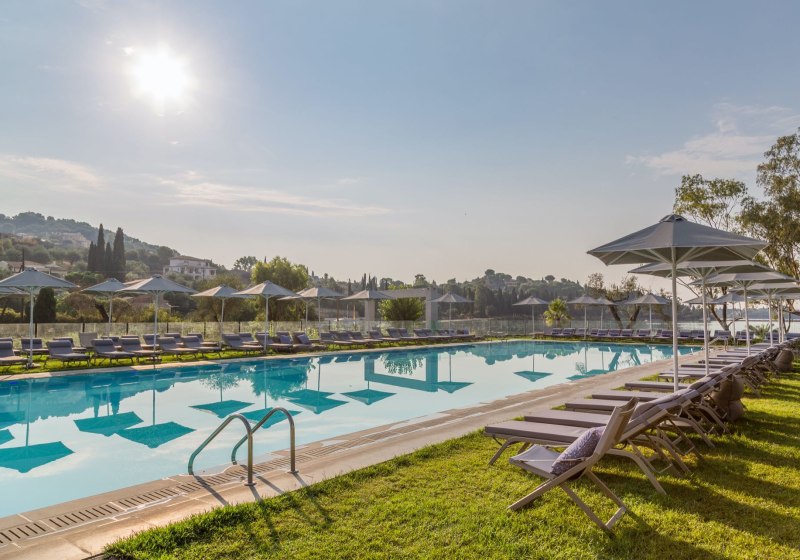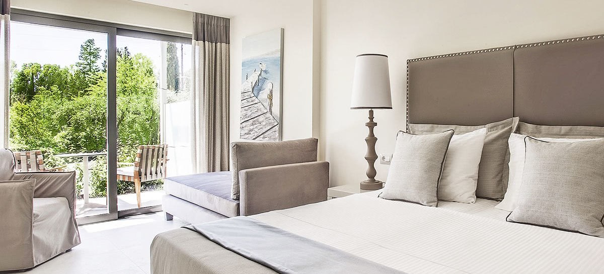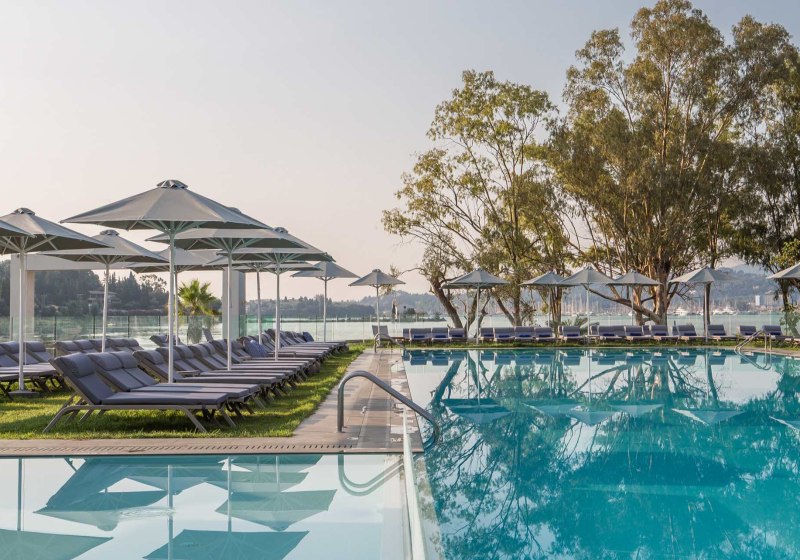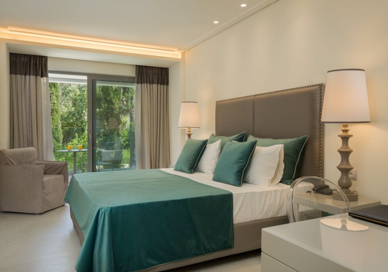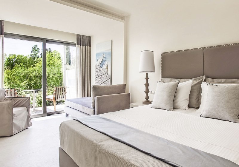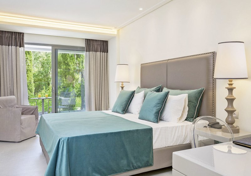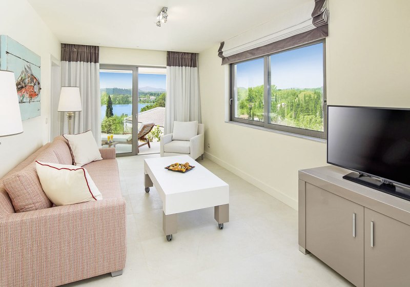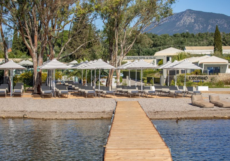 Dank 100 Metern zur Kiesbucht, rund 10 Kilometern nach Korfu-Stadt und etwa 13 Kilometern zum Flughafen bleibt Ihr beweglich. Zimmer mit Balkon oder Terrasse, teils mit privatem Pool oder Whirlpool, erweitern Eure Rückzugsräume. Eine klare Wahl für entspannte Tage in den Ferien.