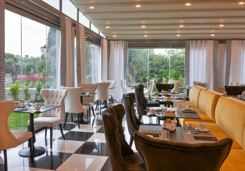 Die öffentlichen Bereiche des Rodostamo Hotel & Spa sind klar gegliedert: Lobby und 24-Stunden-Rezeption bieten Orientierung, WLAN ist im gesamten Hotel verfügbar. Minimarkt und Souvenirshop decken kleine Bedürfnisse; Parkplätze und ein Mietwagen- sowie Transfersetup erleichtern die Mobilität. Ein Executive-Bereich ist komfortabel über einen Aussenlift erreichbar und fügt der Anlage eine exklusive Note hinzu.