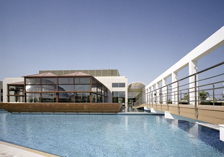 • Liegestühle • Hallenbad • Außenpool • Sonnenschirme • Poolbar • Sonnenterrasse • Badetücher • Wasserrutsche • Wasserpark • Pool