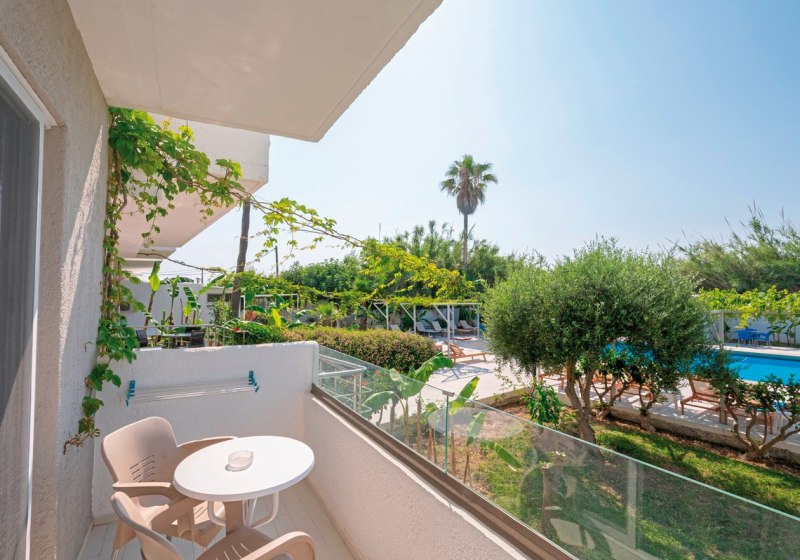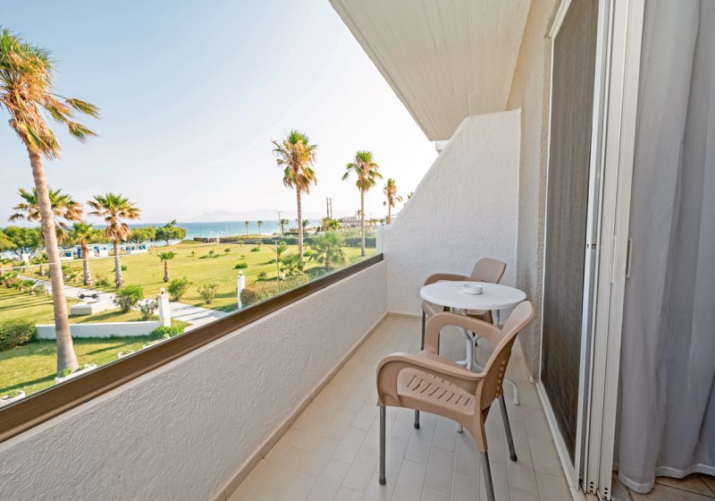 Wählt zwischen Meerblick, Poolblick oder Gartenblick und richtet Eure Tage nach dem gewünschten Panorama aus. Wer Musik mag, nutzt Radio oder Stereoanlage. Das Design bleibt unaufgeregt, die Ausstattung zweckmässig – ideal für Strandtage mit zuverlässiger Rückkehrbasis. Der Balkon wird damit zum echten Mehrwert: Luft, Licht und die Nähe zur Szenerie, ohne den Raum zu verlassen.
