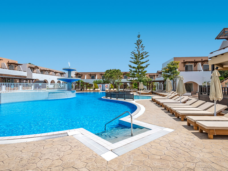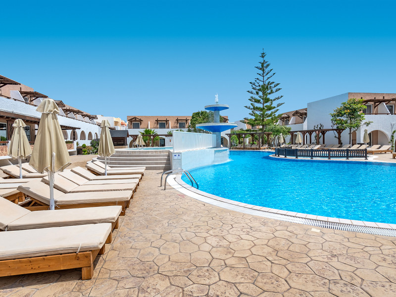 Im Gaia Village erwartet Euch ein legeres Feriengefühl mit klarer Struktur. Die Anlage in Tigaki ist überschaubar, wirkt aufgeräumt und bietet mit zwei Süßwasserpools und zwei Kinderbecken viel Raum für entspannte Tage am Wasser. Mit WLAN in der gesamten Anlage bleibt Ihr flexibel, während Ihr auf der Sonnenterrasse Platz nehmt oder Euch am Pool mit Liegen und Schirmen zurückzieht. Familien fühlen sich dank Spielplatz und Familienzimmern mit separatem Schlafraum gut aufgehoben.